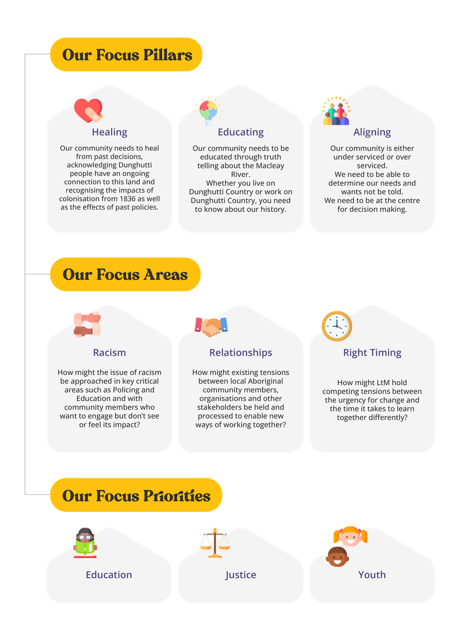 Our main commitment is changing the education and justice paradigm for children, young people and adults in the Macleay Valley.